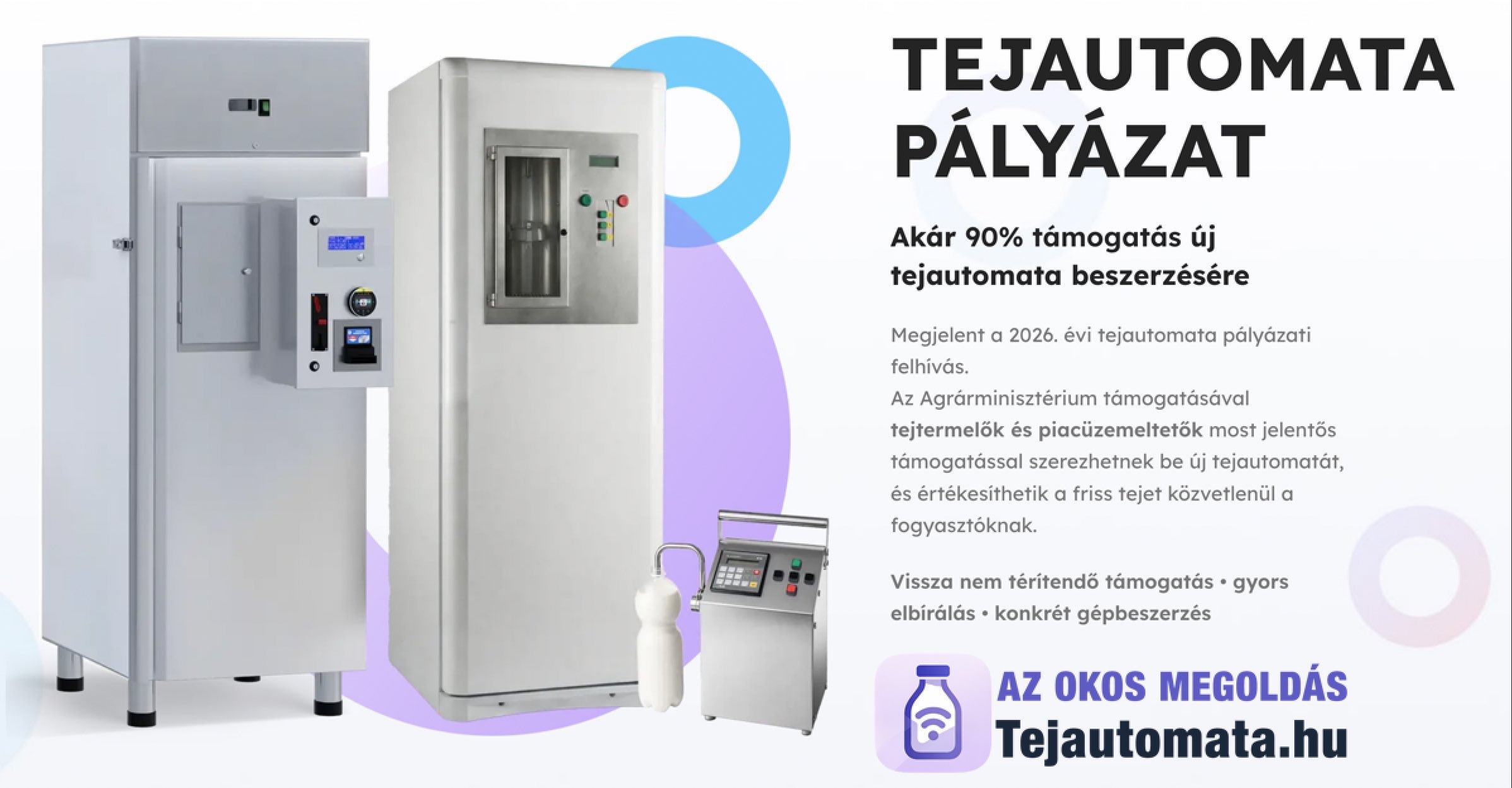 A Tejautomata pályázat 2026 kiemelt lehetőséget kínál tejtermelőknek és piacüzemeltetőknek, hogy közvetlen értékesítési csatornát alakítsanak ki friss tejtermékeik számára. A pályázat célja a hazai tejágazat megerősítése, a helyi termelők támogatása és a fogyasztók friss, ellenőrzött forrásból származó tejhez való hozzáférésének javítása.