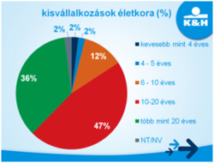 A K&H 500 hazai kkv megkérdezésén alapuló felmérése szerint a cégek zöme már túl van a korai gyermekkoron. „A vállalkozások legnagyobb része, 41%-a a húszas éveit tapossa. Közel ugyanilyen arányban (39%) vannak azok, amelyek több mint tíz éve működnek. Minden hetedik vállalkozás már elérte az iskolás, azaz a 6 éves kort, míg ennél fiatalabb cégekkel csak elvétve találkozhatunk (5%). A hazai kkv szektor tehát nagyrészt stabil, viszonylag komoly múlttal rendelkező cégekből áll” – részletezte az eredményeket Kovács Viktor Zoltán.